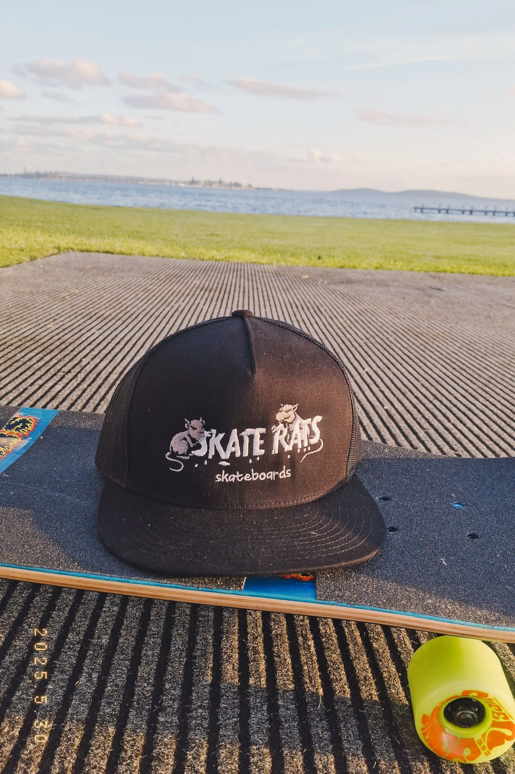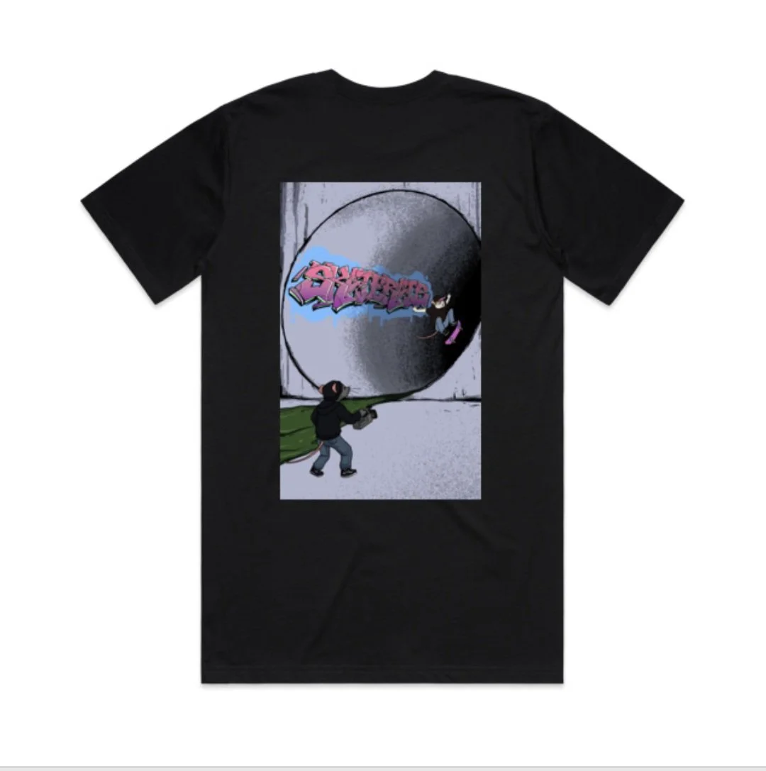 "Full pipe dreamsAvailable in 8.5/8.75art by Rizky Nugraha march 2026 Full pipe dreams t shirts available in Navy Blue/black M / L / XL spring 2025 Skate Rats CHEWED UP logo Board available in 8.25/8.5/8.75/9.0 skate rats trucker hat skate rats logo AS t shirtsavailable in M/L/XL